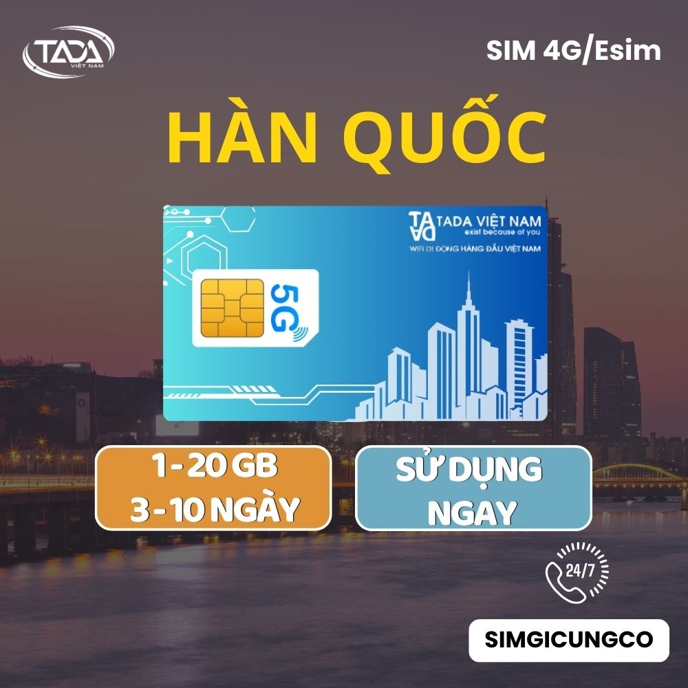 2. Sim Du Lịch Hàn Quốc 5-10 Ngày 5-15GB/Sim.